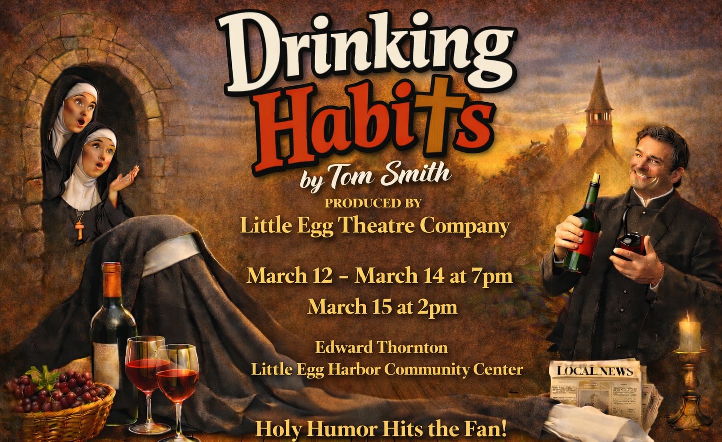 Two nuns at the Sisters of Perpetual Sewing have been secretly making wine to keep the convent’s doors open, but Paul and Sally, reporters and former fiances, are hot on their trail. They go undercover as a nun and a priest, but their presence, combined with the addition of a new nun, spurs paranoia throughout the convent that spies have been sent from Rome to shut them down. Wine and secrets are inevitably spilled as everyone tries to preserve the convent and reconnect with lost loves.